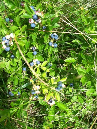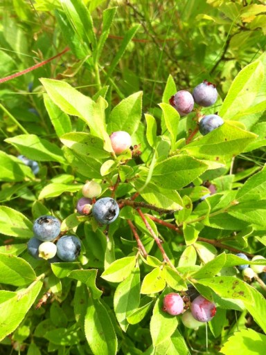We saved containers from raspberries and blueberries that we bought last year at the grocery to use for this year’s blueberry harvest — smart thinking! — and they fill up fast! For the next few days we’ll be picking berries like mad:)